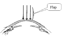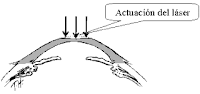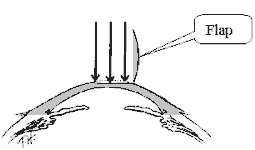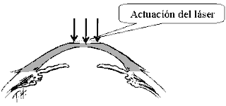 –Queratomileusis In Situ Asistida con Láser Excimer (LASIK): LASIK es un proceso en el que el láser excímer se aplica por debajo de una delgada capa (colgajo o flap ) de la córnea (figura 4). Este colgajo o flap es creado por un instrumento denominado microqueratomo, cuyo desarrollo comenzó hace más de 30 años para la realización de transplantes de córnea y otros procedimientos quirúrgicos o refractivos. Después de aplicar el láser sobre la capa interna de la cornea el flap es reaplicado. El flap se adhiere a la córnea sin la necesidad de aplicar puntos de sutura.